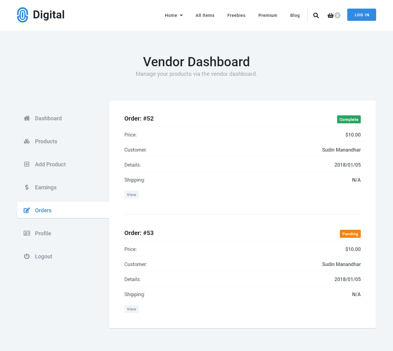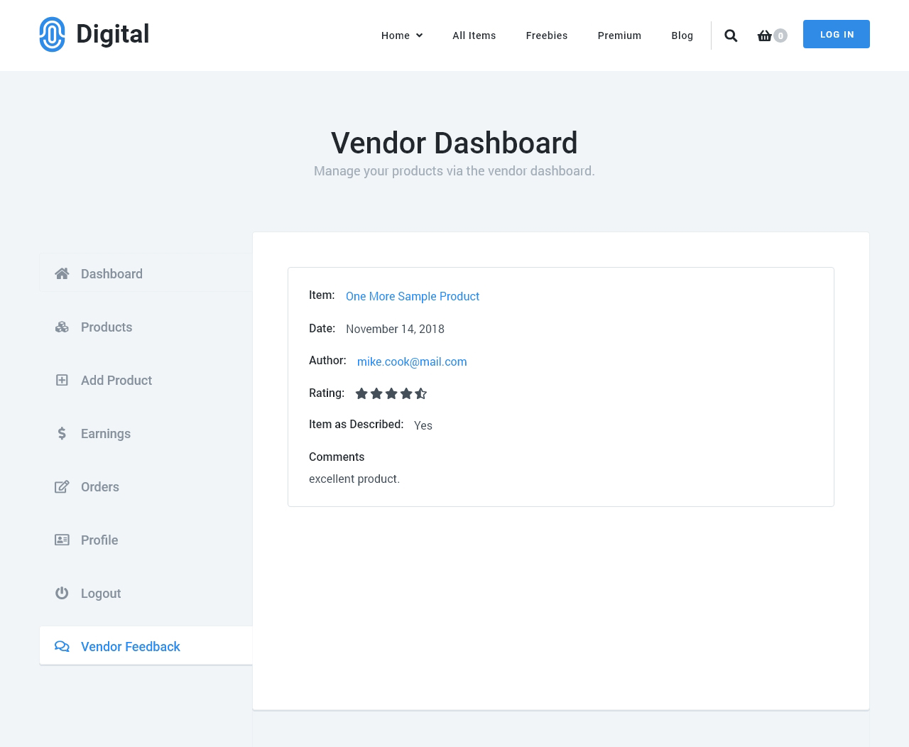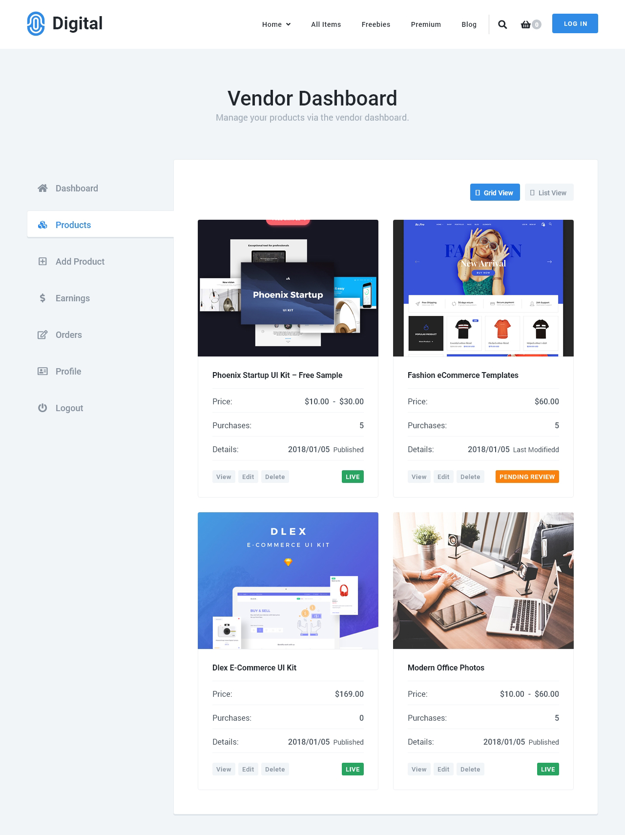 Digital Download Pro allows you to create a multi-vendor online shop with multiple-authors. You can enable the users to sell their products on your website using Front End Submissions Extension for Easy Digital Downloads. Once the extension is installed and activated, it creates a Vendor Dashboard which allows other vendors to create and manage their products, manage the reviews and comments, view the reports of sales and more. The attractive UI with advanced features of the admin area allows helps your focus on your products and reports in a better way.